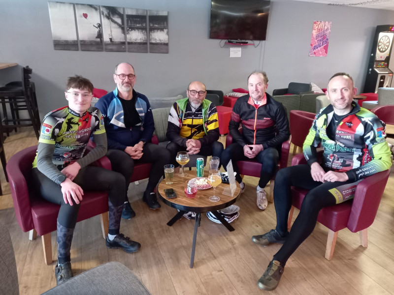 Notre dernière sortie a eu lieu le 28 mars à l'issue de laquelle le club offrait un pot à l'Eure de la bière. Après les deux boucles, seuls cinq coureurs ont profité de ce moment offert par le club :