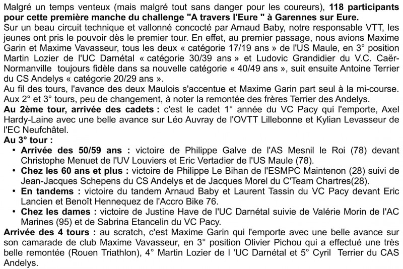 Retour sur la première manche du challenge "A travers l'Eure" 2020.